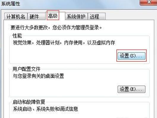 2. 在高級(jí)選項(xiàng)卡下,點(diǎn)擊性能里面的設(shè)置按鈕。