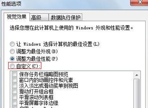 3. 在視覺(jué)效果標(biāo)簽,勾選自定義,然后把所有特效功能全部取消勾選。確定之后,界面會(huì)發(fā)生變化,如下圖所示。看起來(lái)像是XP的系統(tǒng),其實(shí)還是Win7系統(tǒng)。