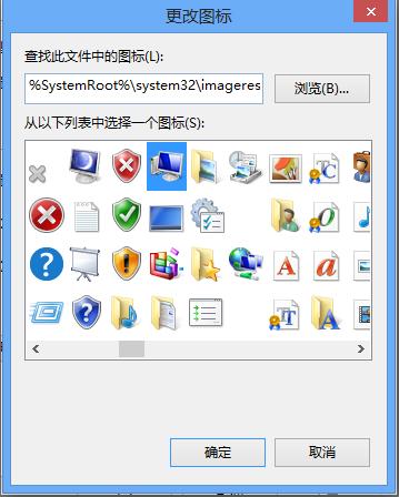 5、在彈出的更改圖標窗口中,鍵入:%SystemRoot%\System32\imageres.dll命令后按回車,再從下列圖標中找到并選中“計算機”的圖標;