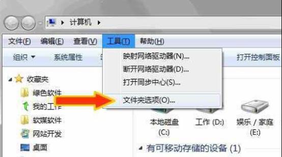 1.按“Win+E”組合鍵直接打開資源管理器,點(diǎn)擊“工具”選擇“文件夾選項(xiàng)”。