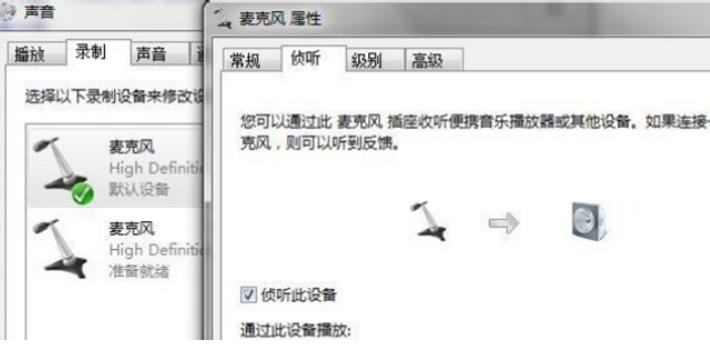 3.彈出的麥克風(fēng)屬性窗口,點(diǎn)擊“偵聽(tīng)”選項(xiàng)卡,勾選“偵聽(tīng)此設(shè)備”,就試試,一般情況下就已經(jīng)OK;如果還是沒(méi)有聽(tīng)到,切換一下“通過(guò)此設(shè)備播放”里的聲音輸出設(shè)備,就OK了。