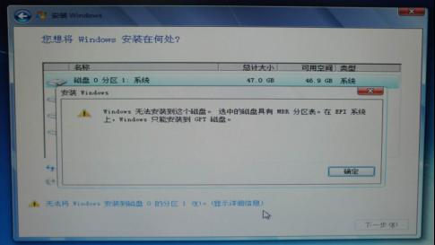 | Windows 7,中文名稱視窗7,是由微軟公司(Microsoft)開發的操作系統,內核版本號為Windows NT 6.1。Windows 7可供家庭及商業工作環境:筆記本電腦 、平板電腦 、多媒體中心等使用。Windows 7可供選擇的版本有:入門版(Starter)、家庭普通版(Home Basic)、家庭高級版(Home Premium)、專業版(Professional)、企業版(Enterprise)(非零售)、旗艦版(Ultimate)。 有用戶在安裝Win7 64位系統時,安裝到磁盤分區界面時就無法繼續了,出現了“Windows 無法安裝到這個磁盤,選中的磁盤具有MBR分區表。在 EFI 系統上,Windows 只能安裝到 GPT 磁盤。”的提示,安裝大地Win764位系統時卡在MBR分區中怎么辦?下面小編給大家作出如下解析。![]() 一、原因分析: 一般出現此提示是由于用戶從光盤引導安裝系統時,選擇錯了引導啟動項導致的。 二、解決方案: 1、如果用戶只是要安裝系統,確保在磁盤中沒有重要數據的話,指導用戶重啟電腦,F12中會出現下圖所示菜單,選擇 Legacy開頭的正常安裝便可解決了。 ![]() 2、如果用戶需要使用GPT分區表來安裝系統的話,那么需滿足以下條件: a.主機主板為 Intel 6 系及以上主板 b.采用64位Vista及以上版本的操作系統。 滿足以上2個條件,同時確保硬盤中無重要數據后,從光盤引導,將磁盤分區界面中的所有分區(包括隱藏分區)刪除掉,最后正常分區格式化安裝即可實現GPT磁盤格式安裝系統。 windows 7 的設計主要圍繞五個重點——針對筆記本電腦的特有設計;基于應用服務的設計;用戶的個性化;視聽娛樂的優化;用戶易用性的新引擎。 跳躍列表,系統故障快速修復等,這些新功能令Windows 7成為最易用的Windows。 |