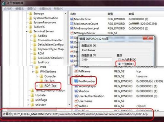 | Windows 7,中文名稱視窗7,是由微軟公司(Microsoft)開發的操作系統,內核版本號為Windows NT 6.1。Windows 7可供家庭及商業工作環境:筆記本電腦 、平板電腦 、多媒體中心等使用。Windows 7可供選擇的版本有:入門版(Starter)、家庭普通版(Home Basic)、家庭高級版(Home Premium)、專業版(Professional)、企業版(Enterprise)(非零售)、旗艦版(Ultimate)。 為了加強系統的安全,小編建議將win7系統遠程桌面端口修改掉,現小編給大家介紹修改系統之家Win7系統的遠程桌面3389端口,具體步驟如下:1. 按“Win+R”組合鍵打開運行窗口,輸入Regedit 并按回車,打開注冊表編輯器。 2. 在“注冊表編輯器”依次定位到 “HKEY_LOCAL_MACHINE\System\CurrentControlSet\Control\TerminalServer\WinStations\RDP Tcp\PortNumber”。 單擊該PortNumber編輯菜單,然后修改為十進制。 3. 鍵入新的端口號,然后單擊"確定"。退出注冊表編輯器。 重新啟動計算機后即可生效。 windows 7 的設計主要圍繞五個重點——針對筆記本電腦的特有設計;基于應用服務的設計;用戶的個性化;視聽娛樂的優化;用戶易用性的新引擎。 跳躍列表,系統故障快速修復等,這些新功能令Windows 7成為最易用的Windows。 |
