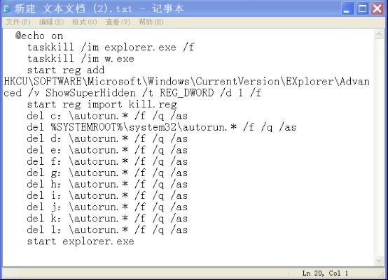 2、再新建個文本文檔,把下面內(nèi)容添加到文本文檔中,將它另存為“u.vbe病毒消除.bat”。