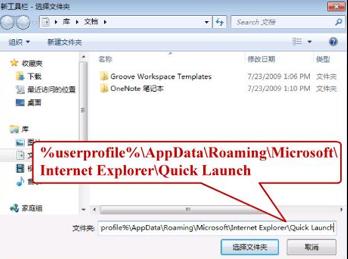 1、右擊“任務(wù)欄”——選擇“工具欄 ”——新建工具欄。在文件夾位置輸入:%UserProfile%\AppData\Roaming\Microsoft\Internet Explorer\Quick Launch,然后按回車。