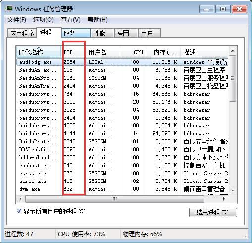 | Windows 7,中文名稱視窗7,是由微軟公司(Microsoft)開發(fā)的操作系統(tǒng),內(nèi)核版本號為Windows NT 6.1。Windows 7可供家庭及商業(yè)工作環(huán)境:筆記本電腦 、平板電腦 、多媒體中心等使用。Windows 7可供選擇的版本有:入門版(Starter)、家庭普通版(Home Basic)、家庭高級版(Home Premium)、專業(yè)版(Professional)、企業(yè)版(Enterprise)(非零售)、旗艦版(Ultimate)。 查看系統(tǒng)之家純凈win7系統(tǒng)進程PID標(biāo)識符的技巧分享給大家。使用電腦過程中,當(dāng)用戶需要了解進程狀況時,都會通過任務(wù)管理器來查看,但是如何查看PID 標(biāo)識符,其實如果用戶想查看進程PID標(biāo)識符的話,需通過對“任務(wù)管理器”相關(guān)技巧設(shè)置才能查看的,具體如下: