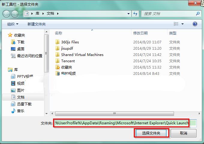 | Windows 7,中文名稱視窗7,是由微軟公司(Microsoft)開發的操作系統,內核版本號為Windows NT 6.1。Windows 7可供家庭及商業工作環境:筆記本電腦 、平板電腦 、多媒體中心等使用。Windows 7可供選擇的版本有:入門版(Starter)、家庭普通版(Home Basic)、家庭高級版(Home Premium)、專業版(Professional)、企業版(Enterprise)(非零售)、旗艦版(Ultimate)。 使用過XP系統的用戶就知道,XP系統自帶有快速啟動欄,而且這個功能很多用戶都覺得好用。但是升級Win7系統后,默認情況下是沒有這個功能的,如果習慣使用XP系統的話,會沒有此功能很不習慣,現小編介紹激活系統之家windows7系統快速啟動欄的方法,具體操作步驟如下:1、在任務欄空白處右鍵,選擇“工具欄”——“新建工具欄...”。 2、在打開的窗口中,輸入:%UserProfile%\AppData\Roaming\Microsoft\Internet Explorer\Quick Launch,然后點擊“選擇文件夾”。 ![]() 通過以上設置后,便可看到Windows任務欄上的快速啟動欄(Quick Launch)了。 windows 7 的設計主要圍繞五個重點——針對筆記本電腦的特有設計;基于應用服務的設計;用戶的個性化;視聽娛樂的優化;用戶易用性的新引擎。 跳躍列表,系統故障快速修復等,這些新功能令Windows 7成為最易用的Windows。 |