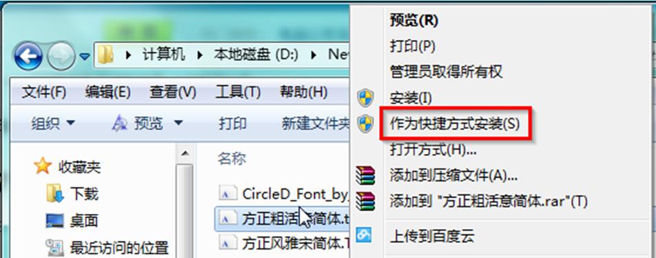 | Windows 7,中文名稱視窗7,是由微軟公司(Microsoft)開發的操作系統,內核版本號為Windows NT 6.1。Windows 7可供家庭及商業工作環境:筆記本電腦 、平板電腦 、多媒體中心等使用。Windows 7可供選擇的版本有:入門版(Starter)、家庭普通版(Home Basic)、家庭高級版(Home Premium)、專業版(Professional)、企業版(Enterprise)(非零售)、旗艦版(Ultimate)。 很多用戶因工作需要或個人愛好,喜歡裝各種不同的字體,但是由于有些字體本身很大,特別是中文字體,一般在10MB左右,一旦安裝過多的字體,會使系統盤臃腫不堪。怎么辦呢?其實在安裝的時候通過一些優化便可解決此問題的,現win7系統之家官網教你優化設置Win7字體讓其不占內存的技巧。1、打開一個非系統盤,然后右鍵新建一個名稱為NewFonts的文件夾,比如小編這里選擇的是D盤。 2、將全部需要安裝的字體放到這個文件夾里面。 3、按“Win+R”打開“運行”窗口,輸入“fonts”命令后按回車,或點擊“確定”。 4、在Win7系統默認字體安裝目錄中,點擊“字體設置”。 5、在字體設置窗口中,勾選“允許使用快捷方式安裝字體(高級)(A)”,點擊“確定”。 6、然后在剛剛新建的NewFonts文件夾中,在需要安裝的字體上右鍵,選擇“作為快捷方式安裝”即可。 通過以上對win7系統之家官網教你優化設置Win7字體讓其不占內存的技巧介紹后,相信對大家有所幫助。更多精彩內容盡在win7系統之家官網。 windows 7 的設計主要圍繞五個重點——針對筆記本電腦的特有設計;基于應用服務的設計;用戶的個性化;視聽娛樂的優化;用戶易用性的新引擎。 跳躍列表,系統故障快速修復等,這些新功能令Windows 7成為最易用的Windows。 |