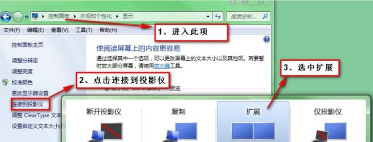 1、在桌面空白處右鍵選擇“屏幕分辨率”,在打開的界面中點擊左側(cè)窗口的“連接到投影儀”,然后選中擴展。