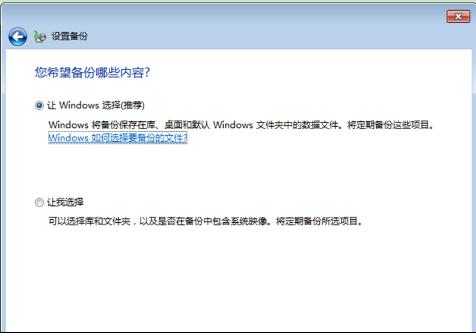 讓我選擇——可以手動(dòng)配置Win7系統(tǒng)的計(jì)劃備份具體內(nèi)容,實(shí)際上也是讓W(xué)indows選擇的默認(rèn)內(nèi)容。