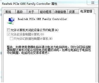 4、在打開的屬性窗口中,切換到“電源管理”選項,取消“允許計算機關閉此設備以節約電源”。