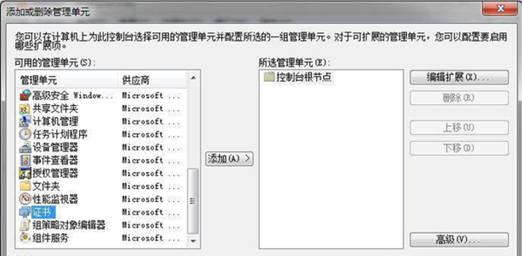 3、在左側(cè)窗口中選擇“證書”,點(diǎn)擊“添加”。