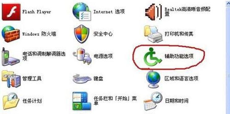 2、點(diǎn)擊“開始——控制面板——輔助功能選項(xiàng)”