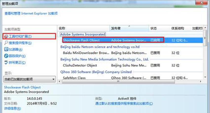 2、Flash插件問題:查看瀏覽器中是否開啟了Flash插件或是沒有安裝,及時(shí)將最新的Flash插件開啟或安裝即可。