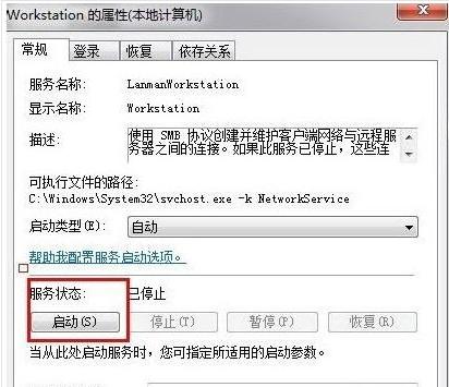 3、在Workstation的名稱上雙擊,打開的屬性中,將“啟動(dòng)類型”修改為“自動(dòng)”,“服務(wù)狀態(tài)”修改為“已啟動(dòng)”。
