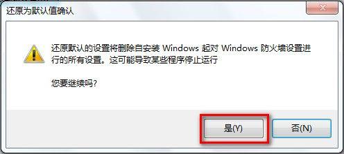 | Windows 7,中文名稱視窗7,是由微軟公司(Microsoft)開發的操作系統,內核版本號為Windows NT 6.1。Windows 7可供家庭及商業工作環境:筆記本電腦 、平板電腦 、多媒體中心等使用。Windows 7可供選擇的版本有:入門版(Starter)、家庭普通版(Home Basic)、家庭高級版(Home Premium)、專業版(Professional)、企業版(Enterprise)(非零售)、旗艦版(Ultimate)。 一些用戶在使用Win7系統過程中,會對Windows防火墻進行一些設置,但一些用戶進行設置后,又想還原回原樣的話,那么設置防火墻后怎樣還原為電腦公司Win7 系統的默認設置?下面小編給大家介紹還原的步驟方法,具體如下:1、點擊“開始——控制面板——系統和安全——Windows防火墻”。 ![]() 2、在左側窗口中點擊“還原默認設置”。 ![]() 4,點擊“還原默認設置”后,系統會彈出的提示窗口,選擇“是”。 ![]() 通過以上設置后,防火墻就完成了還原默認設置。有需要的用戶請按照以上方法操作吧。 windows 7 的設計主要圍繞五個重點——針對筆記本電腦的特有設計;基于應用服務的設計;用戶的個性化;視聽娛樂的優化;用戶易用性的新引擎。 跳躍列表,系統故障快速修復等,這些新功能令Windows 7成為最易用的Windows。 |