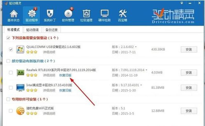 驅動精靈是用戶管理驅動的萬能助手,用戶可通過驅動精靈輕松地恢復舊版驅動,還可對驅動進行備份和更新等。