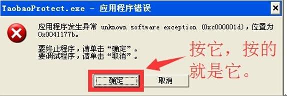 | Windows 7,中文名稱視窗7,是由微軟公司(Microsoft)開發的操作系統,內核版本號為Windows NT 6.1。Windows 7可供家庭及商業工作環境:筆記本電腦 、平板電腦 、多媒體中心等使用。Windows 7可供選擇的版本有:入門版(Starter)、家庭普通版(Home Basic)、家庭高級版(Home Premium)、專業版(Professional)、企業版(Enterprise)(非零售)、旗艦版(Ultimate)。 使用電腦過程中,有些用戶經常遇到這樣一個問題:TaobaoProtect.exe 應用程序錯誤,應用程序發生異常 unknown software exception (0xc000001d),位置為 0x0041177b,怎么辦?其實這主要是軟件文件損壞或病毒所致,下面小編給大家介紹Win7筆記本彈出TaobaoProtect.exe 應用程序錯誤的解決方案。1、了解正在使用的電腦是否安裝過淘寶之類的一些軟件,如果從未安裝,說明電腦中毒了,趕緊殺毒吧。 2、如果電腦應安裝了淘寶的一些軟件。覺得彈出個對話框并無礙,那就點了“確定”即可關閉彈窗。 ![]() 3、如果電腦安裝了淘寶的一些軟件,一般情況下,“TaobaoProtect.exe”這個程序和阿里旺旺有關系。建議把阿里旺旺卸載后,用清理軟件徹底清理卸載剩下的文件夾和注冊表里的鍵值。 4、如果覺得比較難于找到“TaobaoProtect.exe”這個程序所在文件夾,可使用Windows的搜索功能進行全盤搜索找到,然后刪除這個文件夾即可。 5、如果以上方法都無法解決的話,就重裝系統吧,重裝系統或升級系統到最新,然后安裝阿里旺旺,再看看是否還會有這個TaobaoProtect.exe-應用程序錯誤的對話框,如果沒有問題就解決了。 windows 7 的設計主要圍繞五個重點——針對筆記本電腦的特有設計;基于應用服務的設計;用戶的個性化;視聽娛樂的優化;用戶易用性的新引擎。 跳躍列表,系統故障快速修復等,這些新功能令Windows 7成為最易用的Windows。 |