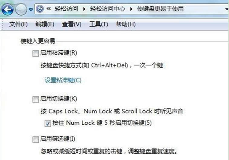 | Windows 7,中文名稱視窗7,是由微軟公司(Microsoft)開發的操作系統,內核版本號為Windows NT 6.1。Windows 7可供家庭及商業工作環境:筆記本電腦 、平板電腦 、多媒體中心等使用。Windows 7可供選擇的版本有:入門版(Starter)、家庭普通版(Home Basic)、家庭高級版(Home Premium)、專業版(Professional)、企業版(Enterprise)(非零售)、旗艦版(Ultimate)。 設置番茄花園Win7系統鍵盤輔助功能的方法分享給大家。鍵盤輔助功能選項,被微軟定義為“為視覺、聽力和行動能力而調整計算機設置”。對于用戶來說,這幾個功能都相當重要。大家一起來看看鍵盤輔助功能的設置吧。1、點擊“開始——控制面板——輕松訪問——輕松訪問中心——使鍵盤更易于使用”。 2、在打開的使鍵盤更易于使用的窗口中, 使用粘滯鍵可為同時按下兩個或多個快捷鍵比較困難的人來操作。比如說對于常人使用CTRL+C復制鍵很簡單,但是對于部分困難人士可使用粘滯鍵,你可先按一下CTRL,然后再按一下C鍵來實現復制快捷鍵操作。 ![]() 3、使用篩選鍵,可更好地區分單擊和雙擊鍵,對于一些操作起來比較遲緩的用戶來說,可能會常常在單擊和雙擊間有錯誤的操作,這個篩選鍵功能避免此問題。 windows 7 的設計主要圍繞五個重點——針對筆記本電腦的特有設計;基于應用服務的設計;用戶的個性化;視聽娛樂的優化;用戶易用性的新引擎。 跳躍列表,系統故障快速修復等,這些新功能令Windows 7成為最易用的Windows。 |
