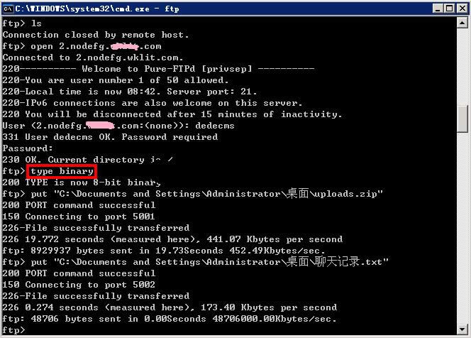 | Windows 7,中文名稱視窗7,是由微軟公司(Microsoft)開發(fā)的操作系統(tǒng),內(nèi)核版本號(hào)為Windows NT 6.1。Windows 7可供家庭及商業(yè)工作環(huán)境:筆記本電腦 、平板電腦 、多媒體中心等使用。Windows 7可供選擇的版本有:入門版(Starter)、家庭普通版(Home Basic)、家庭高級(jí)版(Home Premium)、專業(yè)版(Professional)、企業(yè)版(Enterprise)(非零售)、旗艦版(Ultimate)。 命令行中ftp上傳文件總是不完整,成為損壞文件的問題,相信很多用戶遇到這樣的問題會(huì)舉手無措。小編給大家分享深度技術(shù)Win7命令行中ftp上傳文件時(shí)總是不完整的解決技巧,具體如下: