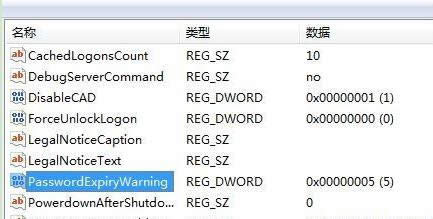 4、雙擊passwordExpiryWarning值,將其數值數據修改為“密碼過期!”,然后再點擊確定按鈕。