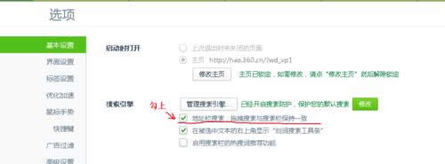 2、將基本設(shè)置中,勾選“地址欄搜索、拖拽搜索與地址欄”的選項,然后點擊“修改”按鈕。