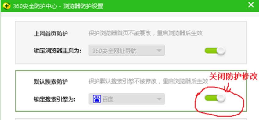 3、在默認搜索防護中關(guān)閉保護修改為自己需要的搜索就行了。