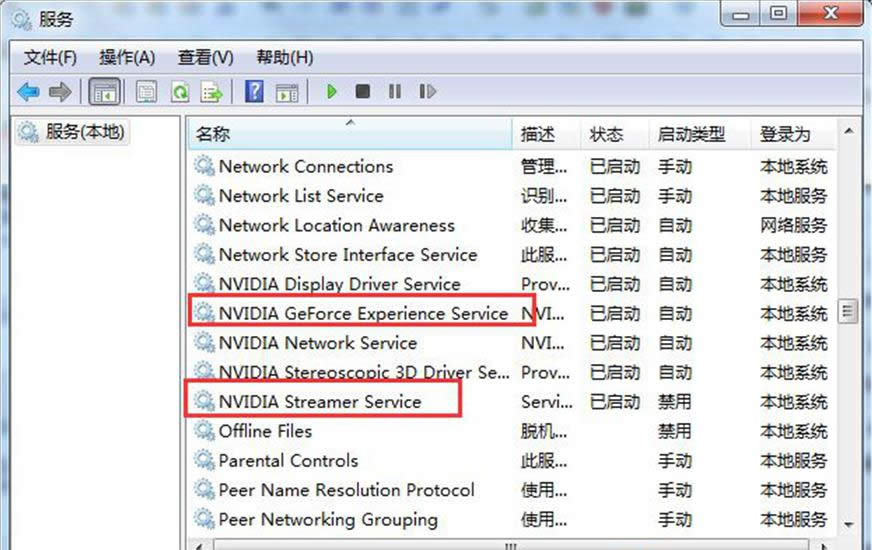 3、在運(yùn)行中輸入“services.msc”回車,在“本地服務(wù)”中,找到“NVIDIA Streamer Service”和“NVIDIA GeForce Experience service”這兩項(xiàng)服務(wù),分別雙擊打開,并分別禁用該兩項(xiàng)服務(wù)。