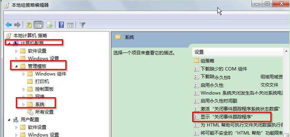 | Windows 7,中文名稱視窗7,是由微軟公司(Microsoft)開發的操作系統,內核版本號為Windows NT 6.1。Windows 7可供家庭及商業工作環境:筆記本電腦 、平板電腦 、多媒體中心等使用。Windows 7可供選擇的版本有:入門版(Starter)、家庭普通版(Home Basic)、家庭高級版(Home Premium)、專業版(Professional)、企業版(Enterprise)(非零售)、旗艦版(Ultimate)。 在使用Win7系統電腦過程中,如果遇到不正常關機現象,也許很多用戶搞不清是什么原因導致的吧,其實事件跟蹤功能查找異常關機的原因,打開事件跟蹤功能的方法也非常簡單,下面小編給大家分享在技術員聯盟Win7系統打開事件跟蹤功能的步驟,具體如下:1、按“Win+ R”,打開“運行”窗口,輸入“gpedit.msc”命令后,按回車鍵。 2、在打開的本地組策略編輯器窗口中,依次展開:“計算機配置——管理模板——系統”。 3、點擊“系統”后,在右側窗口中找到并打開顯示“關閉事件跟蹤程序”。 4、在“顯示‘關閉事件跟蹤程序’”界面中,點擊“已啟用”,最后按“確定”。 windows 7 的設計主要圍繞五個重點——針對筆記本電腦的特有設計;基于應用服務的設計;用戶的個性化;視聽娛樂的優化;用戶易用性的新引擎。 跳躍列表,系統故障快速修復等,這些新功能令Windows 7成為最易用的Windows。 |