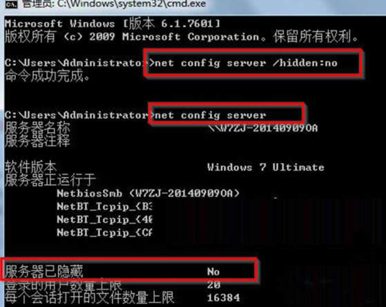 | Windows 7,中文名稱視窗7,是由微軟公司(Microsoft)開發的操作系統,內核版本號為Windows NT 6.1。Windows 7可供家庭及商業工作環境:筆記本電腦 、平板電腦 、多媒體中心等使用。Windows 7可供選擇的版本有:入門版(Starter)、家庭普通版(Home Basic)、家庭高級版(Home Premium)、專業版(Professional)、企業版(Enterprise)(非零售)、旗艦版(Ultimate)。 很多用戶會創建局域網來方便資源的共享,如果你自己的WIn7系統計算機不想讓其他用戶發現自己的計算機,保護電腦安全,可通過命令提示符來隱藏計算機名稱,下面小編教你命令法隱藏深度技術Win7局域網內的計算機名稱,具體如下:1、按“WIN+R”組合鍵打開“運行”窗口,輸入“CMD”命令后按回車打開命令提示符窗口。 2、在命令提示符光標處輸入“net config server/hidden:yes”命令后按回車。 3、在局域網中隱藏自己的計算機名,如果想知道是否隱藏成功,再輸入“net config server”命令,在輸出的結果中出現“服務器已隱藏”字樣被設置為“yes”,設置成功。 ![]() 4、如果以后想取消隱藏,在命令提示窗口中輸入“net config server/hidden:no”命令將隱藏取消掉。 ![]() 按照上面方法操作就可以成功隱藏計算機名稱了,一定程度上保護電腦安全,一款簡單實用的小方法介紹到這里了。 windows 7 的設計主要圍繞五個重點——針對筆記本電腦的特有設計;基于應用服務的設計;用戶的個性化;視聽娛樂的優化;用戶易用性的新引擎。 跳躍列表,系統故障快速修復等,這些新功能令Windows 7成為最易用的Windows。 |