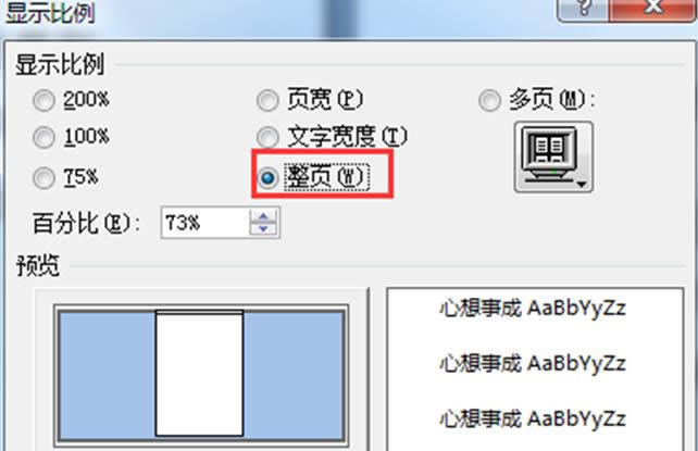 | Windows 7,中文名稱視窗7,是由微軟公司(Microsoft)開發的操作系統,內核版本號為Windows NT 6.1。Windows 7可供家庭及商業工作環境:筆記本電腦 、平板電腦 、多媒體中心等使用。Windows 7可供選擇的版本有:入門版(Starter)、家庭普通版(Home Basic)、家庭高級版(Home Premium)、專業版(Professional)、企業版(Enterprise)(非零售)、旗艦版(Ultimate)。 有用戶每次打開Word2007辦公軟件,就會發現其中兩個頁面同時顯示一排,感覺很不習慣,Word2007打開時總是雙頁顯示,怎樣將其設置為單頁顯示?現小編給大家分享設置電腦公司Win7系統單頁居中方法顯示打開的Word2007的技巧,具體如下:方法一: 打開wrod,按住ctrl鍵,滾動鼠標中間的滾動鍵進行放大。 或是移動右下角比例調節滑塊也是可以的,將頁面放大了就會只顯示一個頁面了。 方法二: 通過改變頁面查看大小來調節,不想改變大小的用戶可點擊右下角“比例數值”。 然后在出現的窗口中選擇為整頁,點擊確定即可。 ![]() 以上就是關于設置Word2007打開以單頁居中顯示的方法介紹了,遇到相同問題的用戶,便可參照以上方法進行操作。 windows 7 的設計主要圍繞五個重點——針對筆記本電腦的特有設計;基于應用服務的設計;用戶的個性化;視聽娛樂的優化;用戶易用性的新引擎。 跳躍列表,系統故障快速修復等,這些新功能令Windows 7成為最易用的Windows。 |