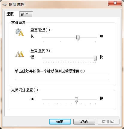 可在調(diào)節(jié)滑塊下方的文本框中按住一個鍵,對更改后的重復延遲和重復速度進行測試.