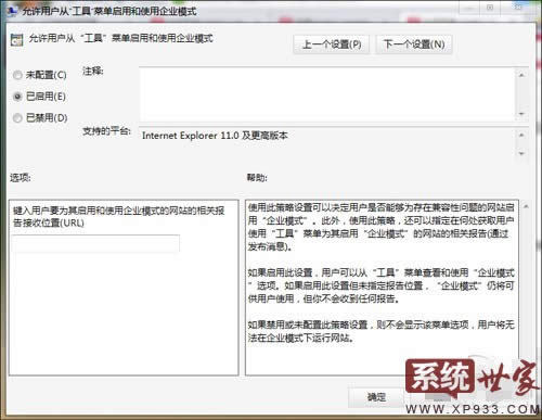 5、接著再返回找到并雙擊打開“允許用戶從工具菜單啟用和使用企業模式”,配置為“已啟用”,點擊應用確定生效; 6、然后再繼續返回列表中找到并雙擊“使用企業模式IE網站網站列表”選項,設置為“已啟用”,IE網站列表位置輸入“HKCU”,然后點擊確定。