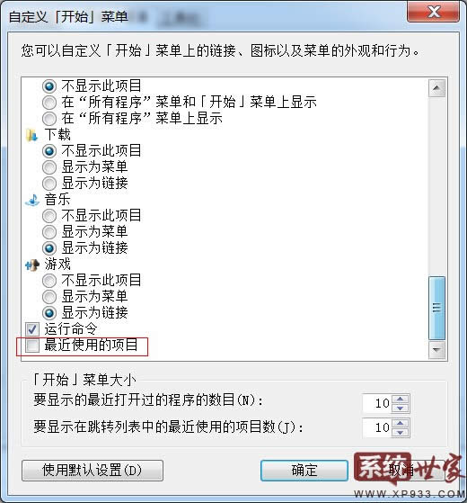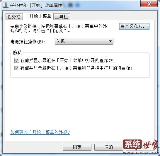 2.在“任務(wù)欄和開(kāi)始菜單屬性”,選中“開(kāi)始菜單”摘要。 3.在“開(kāi)始菜單”中,點(diǎn)擊“自定義”。 4.在“自定義開(kāi)始菜單”中,我們拉豎條到最底端,勾選“最近使用的項(xiàng)目”,再點(diǎn)擊“確定”即可。