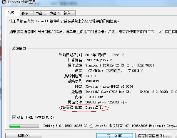 Direct eXtension簡稱DX,是微軟創(chuàng)建的多媒體編程接口DirectX,廣泛應(yīng)用于Windows電子游戲開發(fā)。DX版本的高低與顯卡運(yùn)行效率有關(guān),如果發(fā)現(xiàn)自己的WIN7系統(tǒng)電腦DX版本過低時(shí),可到微軟網(wǎng)站下載更新DX版本。那么在WIN7系統(tǒng)中如何查看自己的電腦安裝的DX版本是否過低呢?現(xiàn)Win7系統(tǒng)之家小編以Windows7系統(tǒng)自帶了DirectX診斷工具查看方法,教大家在Win7系統(tǒng)中快速查看電腦DX版本是否過低的方法,具體操作方法如下: