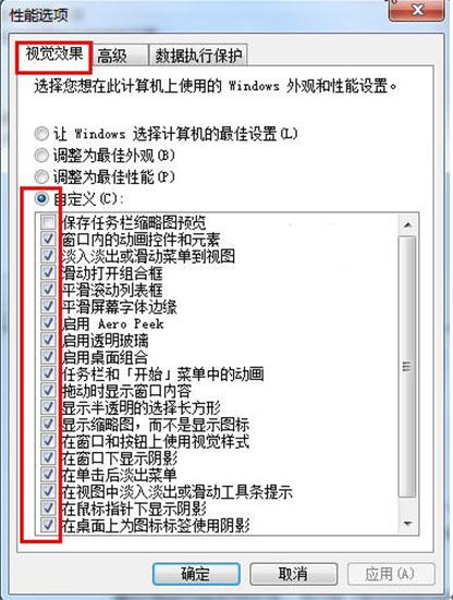 | Windows 7,中文名稱視窗7,是由微軟公司(Microsoft)開發的操作系統,內核版本號為Windows NT 6.1。Windows 7可供家庭及商業工作環境:筆記本電腦 、平板電腦 、多媒體中心等使用。Windows 7可供選擇的版本有:入門版(Starter)、家庭普通版(Home Basic)、家庭高級版(Home Premium)、專業版(Professional)、企業版(Enterprise)(非零售)、旗艦版(Ultimate)。 win7 64位旗艦版系統功能全面,操作界面華麗酷炫,讓用戶時刻感受到科技的精彩。如果用戶的電腦配置不高的話,綜合考慮到系統運行效率速度,可通過將一些不喜歡的動畫模式禁用,達到讓系統占用資源少些、跑得快些,現Win7系統之家給大家介紹win7 64位旗艦版系統視覺效果優化方案,具體步驟如下:1、在Win7界面中點擊“開始”按鈕,右擊“計算機”選擇“屬性”。 2、在彈出的Win7系統信息面板中,單擊“高級系統設置”。 ![]() 3、在系統屬性窗口“高級”選項卡中,點擊“設置”按鈕進入“性能選項”設置面板。 4、彈出性能選項,在“視覺效果”選項卡中,選擇“自定義”,然后在下面的特效列表中根據自己的需要勾選或者取消某些視覺效果,為Win7系統做個性化的自定義設置。 PS:自定義設置中也有可能會影響到Win7系統的 Aero桌面特效,如何掌握好Win7系統性能和視覺效果的平衡點,也可鍛煉用戶的調試能力。 windows 7 的設計主要圍繞五個重點——針對筆記本電腦的特有設計;基于應用服務的設計;用戶的個性化;視聽娛樂的優化;用戶易用性的新引擎。 跳躍列表,系統故障快速修復等,這些新功能令Windows 7成為最易用的Windows。 |
