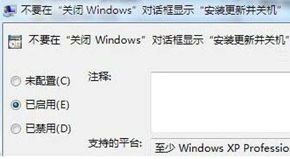 | Windows 7,中文名稱視窗7,是由微軟公司(Microsoft)開發(fā)的操作系統(tǒng),內核版本號為Windows NT 6.1。Windows 7可供家庭及商業(yè)工作環(huán)境:筆記本電腦 、平板電腦 、多媒體中心等使用。Windows 7可供選擇的版本有:入門版(Starter)、家庭普通版(Home Basic)、家庭高級版(Home Premium)、專業(yè)版(Professional)、企業(yè)版(Enterprise)(非零售)、旗艦版(Ultimate)。 當用戶在Win7系統(tǒng)中啟用“自動更新”功能時,關機前就要忍受“系統(tǒng)更新安裝完畢”才能關機。當用戶有要緊的事時,就會被等待關機而糾結了,等待或是強行關機?現(xiàn)Win7系統(tǒng)之家小編給大家讓Win7系統(tǒng)的自動更新智能化的設置技巧。1、按“Win+r”打開“運行”窗口,輸入“gpedit.msc”命令后按回車,打開組策略編輯器。 在組策略編輯器中依次展開“用戶配置→管理模塊→Windows 組件→Windows Update”,雙擊右側窗口中的“不要在關閉Windows對話框顯示是否安裝并更新”。然后在彈出的窗口中,點選“已啟用”,最后單擊“確定”按鈕保存設置。 通過以上對讓Win7系統(tǒng)的自動更新智能化的設置后,就無需在關機前等待“系統(tǒng)更新安裝完畢”才能關機了。 windows 7 的設計主要圍繞五個重點——針對筆記本電腦的特有設計;基于應用服務的設計;用戶的個性化;視聽娛樂的優(yōu)化;用戶易用性的新引擎。 跳躍列表,系統(tǒng)故障快速修復等,這些新功能令Windows 7成為最易用的Windows。 |