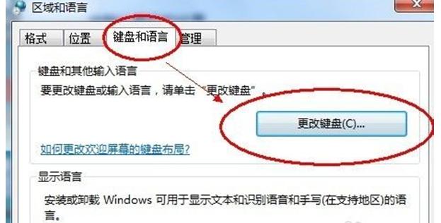 2.默認(rèn)進(jìn)入“鍵盤和語言”管理菜單,單擊“更改鍵盤”