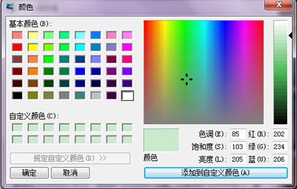 3、色調(diào)設(shè)為85、飽和度設(shè)為123、亮度設(shè)為205,單擊 添加到自定義顏色,然后點(diǎn)擊確定。