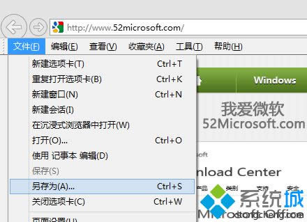 2、或者也可以不顯示菜單欄,點(diǎn)擊IE瀏覽器窗口右上角的齒輪狀“工具”圖標(biāo),在彈出的菜單中點(diǎn)擊“文件”菜單下的“另存為”; 3、這時(shí)會(huì)彈出“保存網(wǎng)頁”對(duì)話窗口;