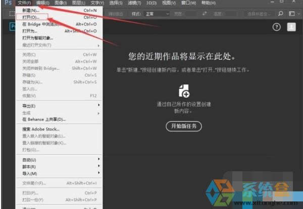 具體如下: 1、首先我們打開PS軟件,然后點擊“文件”,在菜單中選擇“打開”。