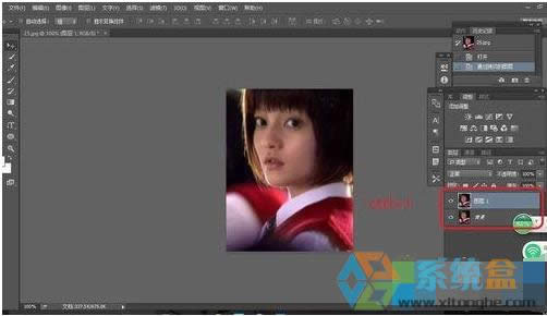 5、我們進入右邊的圖層界面把圖層類型由正常改為疊加。