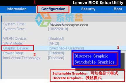 Windows XP是美國微軟公司研發的基于X86、X64架構的PC和平板電腦使用的操作系統,于2001年8月24日發布RTM版本,并于2001年10月25日開始零售。其名字中“XP”的意思來自英文中的“體驗(Experience)”。該系統是繼Windows 2000及Windows ME之后的下一代Windows操作系統,也是微軟首個面向消費者且使用Windows NT5.1架構的操作系統。 很多朋友發現,給自己的筆記本換成XP系統后,只能使用集成顯卡而獨顯則無效,那么是怎么回事呢?原來近幾年開發的筆記本都使用了核顯+獨顯的模式,即雙顯卡,如:Intel集成顯卡+Nvidia獨立顯卡組成的雙顯卡切換,或為Intel集成顯卡+AMD獨立顯卡組成的雙顯卡切換,或為AMD集成顯卡+AMD獨立顯卡組成的雙顯卡切換)推薦雙顯卡筆記本使用Win7旗艦版 目前采用的雙顯卡切換技術均針對Windows 7以上的系統開發與設計,Windows XP系統下不能進行雙顯卡切換,且Windows XP系統下僅能使用集成顯卡。 若您使用的是一款2010年前后購買的聯想雙顯卡切換筆記本電腦,如果希望Windows XP系統下使用獨立顯卡,那么請嘗試按如下方法調試: 1、重啟電腦時連續敲擊F2鍵(ThinkPad筆記本請敲擊F1鍵)進入BIOS,依次選擇“Configuration”菜單——“Graphic Device”選項,該選項有兩個值:“Switchable Graphics”表示可切換顯卡模式;“Discrete Graphics”表示獨立顯卡模式,如下圖所示: